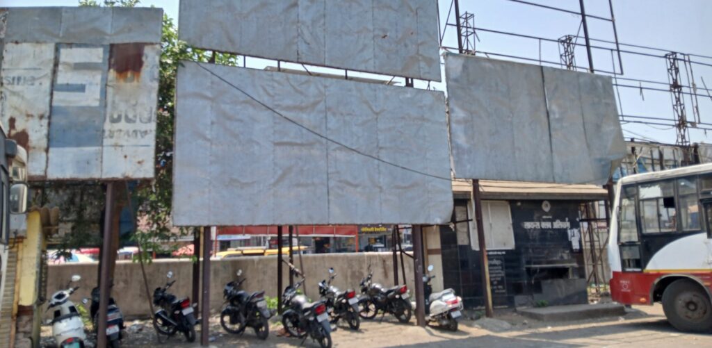 स्थानकाच्या आवारात असलेल्या लोखंडी होर्डींगबाबत कार्यवाही करण्याचे लेखी पत्र नगरपरिषदेकडून आले आहे. विभाग नियंत्रक कार्यालयाकडे याबाबत कळविले आहे. कार्यालयानेदेखील दखल घेत पहाणी करून कार्यवाही करण्याच्या सुचना एजन्सीला दिल्या आहेत. एजन्सीद्वारेदेखील हालचाल सुरु झाली आहे. आठ दिवसात पहाणी करून पुढील कार्यवाही करणार असल्याचे सांगण्यात आले आहे.
