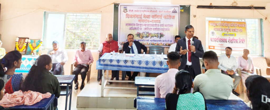 जे.बी. सावंत एज्युकेशन सोसायटीच्या टिकमभाई मेथा वाणिज्य महाविद्यालय माणगावमध्ये राष्ट्रीय युवा दिन, स्वामी विवेकानंद जयंती आणि राजमाता जिजाऊ यांच्या जयंती साजरी करण्यात आली. यानिमित्त सोमवारी (दि.12) कायदेविषयक शिबीराचे आयोजन करण्यात आले होते. या कार्यक्रमात प्रमुख अतिथी म्हणून जिल्हा न्यायाधीश वर्ग एक अतिरिक्त सत्र न्यायाधीश माणगाव संजीव तुकाराम भालेराव उपस्थित होते. त्यांनी आपल्या वक्तव्यातून राष्ट्रीय युवा दिनानिमित्त वेगवेगळ्या कायद्याविषयी माहिती देऊन विविध उदाहरणांच्या माध्यमातून उपस्थित सर्व युवांच्या जीवनावर प्रकाश टाकला. त्याचप्रमाणे सदस्य अधिवक्ता अॅड. रोशन पांढरे यांनी रस्ते वाहतूक, मतदान तसेच युवकांसाठी असणाऱ्या विविध कायद्यांची माहिती देताना स्वामी विवेकानंद यांच्या कार्यातून युवकांसाठीची प्रेरणा आणि आजचा युवक यांची सांगड घालून विद्यार्थ्यांना मार्गदर्शन केले. तसेच प्रा. अशोक मोरे यांनी आलेल्या अतिथींना महाविद्यालयाविषयी सविस्तर माहिती दिली. या कार्यक्रमास जे. बी. सावंत एज्युकेशन सोसायटी माणगावचे सेक्रेटरी नानासाहेब सावंत, माणगाव वकील संघटना अध्यक्ष मोहन मेथा, वकील संघटनेचे उपाध्यक्ष पुंडलिक तुकाराम मालोरे, सहसचिव अॅड. सुजित मेहता, महाविद्यालयातील सर्व प्राध्यापक, प्राध्यापकेत्तर कर्मचारी आणि विद्यार्थी उपस्थित होते. या कार्यक्रमाचे सूत्रसंचालन राजश्री जाधव यांनी केले.