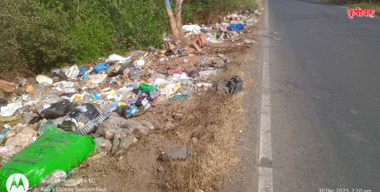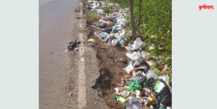 रस्त्याची साईटपट्टी बनतेय कचरा कुंडी; ग्रामीण भागातील आरोग्य धोक्यात