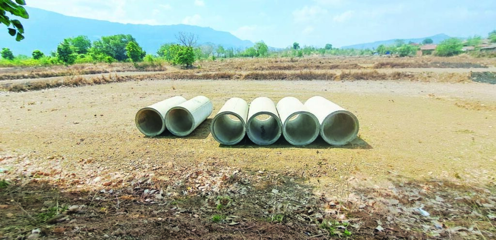 नांदगाव गावातून बलीवरे गावाकडे जाणार्या रस्त्याचे काम करण्यासाठी निधी मंजूर आहे. त्यासाठी तेथे रस्त्यात नवीन पाईप मोरी बनवण्यासाठी सिंमेट पाईपदेखील आणून टाकण्यात आले आहेत. मात्र, रस्त्याचे काम सध्या खड्डेमय असून, रस्त्याची दुरुस्ती आणि नूतनीकरण करण्याची गरज आहे. त्यासाठी बांधकाम खात्याकडून रस्त्यावरील कामे केली जाणार आहेत. त्यात नांदगावच्या पुढे न्हाणी नदीच्या अलीकडे जुन्या मोरीचे पाईप काढून नवीन पाईप टाकण्यासाठी पाईप आणण्यात आले आहेत. मात्र, पावसाळा सुरू झाल्याने ते पाईप तसेच शेतात पडून आहेत. संबंधित ठेकेदाराला सूचना करण्याची मागणी स्थानिक शेतकरी करीत आहेत. ज्या शेतात ते पाईप टाकण्यात आले आहेत, त्या शेतजमिनीचे मालक यांनादेखील शेती करण्यात अडचणी येणार आहेत. त्यामुळे रस्त्याची दुरुस्ती आणि नूतनीकरण ही कामे होतील की नाही, अशी स्थिती निर्मण झाली आहेत.