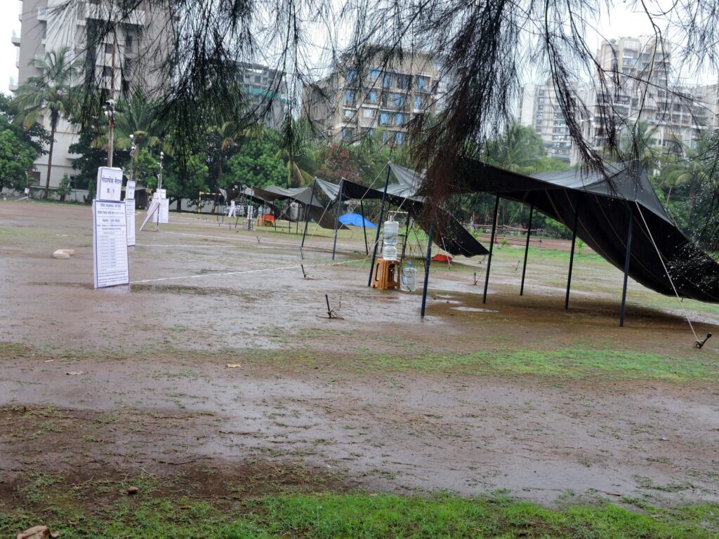 मैदानावर पावसाच्या सरी कोसळल्याने पोलीस भरतीच्या मैदानी चाचणीसाठी मैदान सुस्थितीत नसल्याने नवी मुंबई पोलीस आयुक्तांनी पोलीस भरती प्रक्रिया दोन दिवस पुढे ढकलण्यात आल्याचे बुधवारी सकाळी जाहीर केले. 185 पोलीस कर्मचारी या पदांसाठी तब्बल 7 हजार उमेदवारांनी अर्ज केले आहेत. 19 ते 26 जूनपर्यंत ही भरती प्रक्रिया होणार असून, बुधवारी पहिल्याच दिवशी पावसामुळे मैदान सुस्थितीत नसल्याने नवी मुंबईचे पोलीस आयुक्त मिलिंद भारंबे यांनी मैदानाची पाहणी केल्यानंतर पुढील दोन दिवस भरती प्रक्रिया पुढे ढकल्याचे जाहीर केले.
