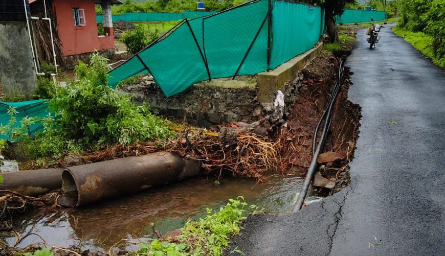 जलजीवन मिशन अंतर्गत गावाला पाणी देण्यासाठी रस्त्याच्या बाजूला चर खणण्यात आले. परंतु, पाईपलाईन खड्ड्यात बुजवताना ती वरवर माती टाकून बुजविल्यामुळे अतिवृष्टीमुळे सर्व माती वाहून जाऊन मोठ मोठे खड्डे आहेत. दरम्यान, रस्त्याच्यामधून पाणी जाण्यासाठी काँक्रिटचे मोठे पाईपसुद्धा वाहून गेले आहेत. रस्त्याची मोरीच वाहून गेल्याने रस्ता पोकळ बनला आहे. त्यामुळे येथून चारचाकी वाहन जाणे अशक्य बनले आहे. संबंधित खात्याला कळवूनसुद्धा लक्ष देत नसल्याने महाराष्ट्र राज्य किसान क्रांती संघटनेचे उपाध्यक्ष श्रीधर जंजीरकर यांनी प्रशासनाचे लक्ष वेधून घेण्यासाठी रास्ता रोको करण्याचा इशारा दिला आहे.