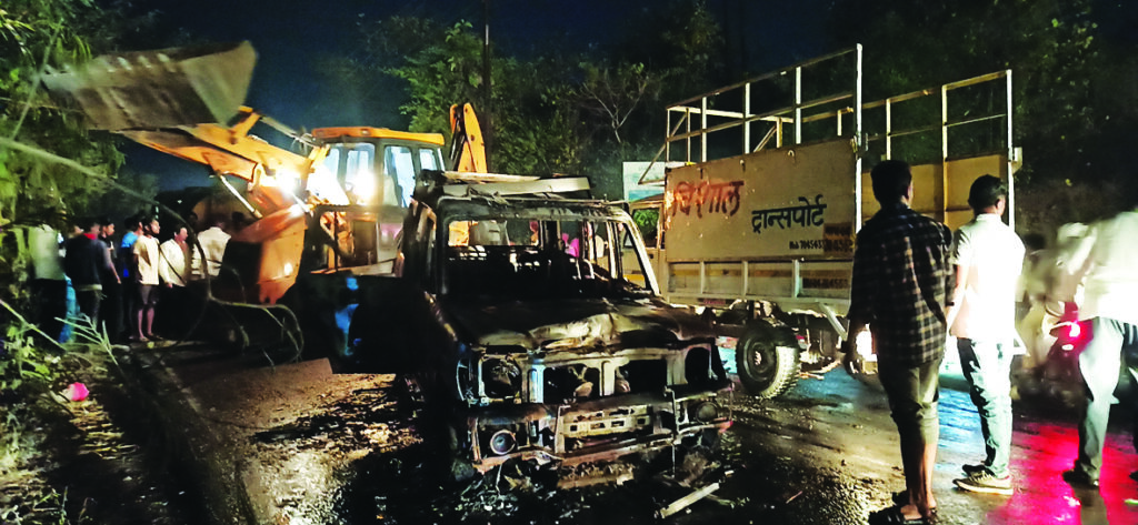 माथेरान घाटाच्या पायथ्याशी नेरळ येथे स्कॉरपियो गाडी आगीत भस्मसात झाली. सुदैवाने त्यातील तिघेजण वाचले आहेत. अग्निशमन दलाची गाडी उशिरा दाखल झाल्याने येथील अग्निशमन यंत्रणेचा मुद्दा यानिमित्ताने पुन्हा एकदा ऐरणीवर आला आहे.