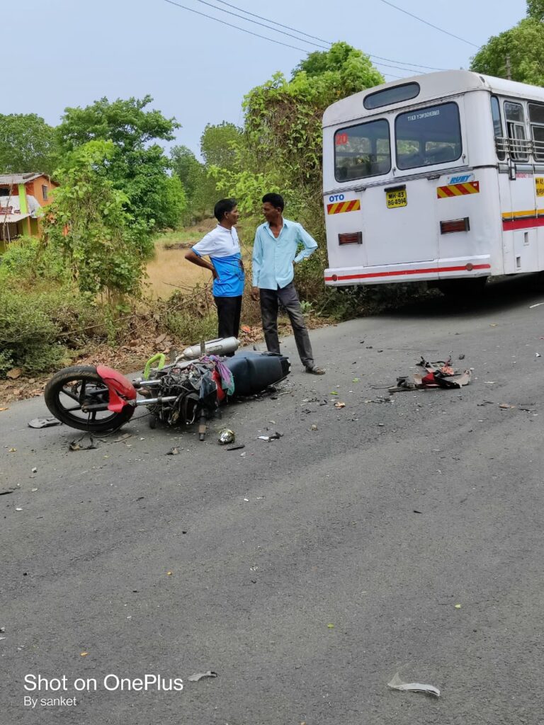 धडक इतकी जोरात होती दुचाकीचे काही भाग इकडे तिकडे विखुरले त्याच बरोबर दुचाकीवरील दोघेजण रस्त्यावर कोसळल्यामुळे बेशुद्धा पडले त्यांना लगेचच रिलायन्स कंपनीच्या दुसर्या बसमध्ये उचलून कंपनीच्या दवाखान्यात उपचार्या साठी नेण्यात आले आहे.