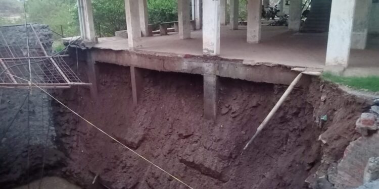 विहिरीलगतची भिंत कोसळल्याने इमारतीला धोका