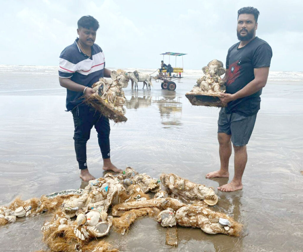 - मानवजातीनेच केलेल्या प्रत्येक गोष्टीच्या अतिरेकपणाचे पडसाद आज सर्वत्र विविध रूपात पाहायला मिळत आहेत. आणि भग्न पावलेल्या मूर्त्या किनाय्रावर आलेल्या पाहील्या की मानवजातीचा प्रचंड राग येतो. – रुचिर राऊत, नागाव
