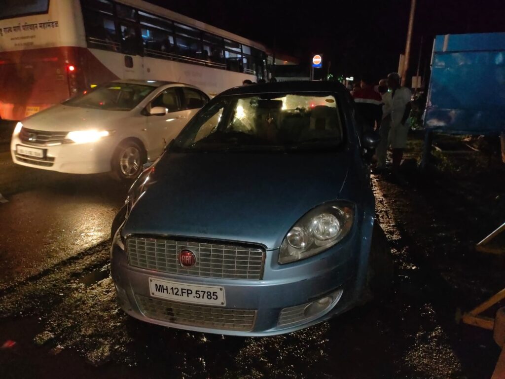 पिंपळभाट येथे रात्री 8 च्या सुमारास हा अपघात झाला. सागर थोरात असे चालकाचे नाव असून ते पर्यटनासाठी शिर्डीहून आले होते. सदर चालकासह अन्य तिघेजण या कारमध्ये होते. भरधाव वेगाने कार (क्रमांक एमएच 12 एफ पी 5785) चालवित असताना पिंपळभाट येथे आल्यावर चालकाचे नियंत्रण सुटून समोर येणार्या एका दुचाकीला त्याने उडवले. त्याचवेळी पॅशन दुचाकीस्वाराने सावध होत उडी मारल्याने तो बचावला. तर तर दुसर्या शाईन दुचाकीला देखील उडवले. त्याचवेळी समोर येणार्या टिआगो कारवर या अपघातातील दुचाकी घासून गेल्याने त्या कारचे देखील काही प्रमाणात नुकसान झाले. त्यानंतरही भरधाव असणारी कार समोरुन येणार्या अलिबाग पेण एसटी क्रमांक एमएच 20 बी एल 3217 च्या मागील बाजूकडील चाकात जाऊन अडकली. अपघातानंतर कार चालकाने पलायन केले. मात्र स्थानिक आणि पोलीस हवालदार सुनील फड यांनी शिताफिने त्याला ताब्यात घेत अलिबाग पोलिस ठाण्यात हजर केले. सदर चालकाविरोधात अलिबाग पोलिस ठाण्यात उशिरापर्यंत गुन्हा दाखल करण्यात येत होता.