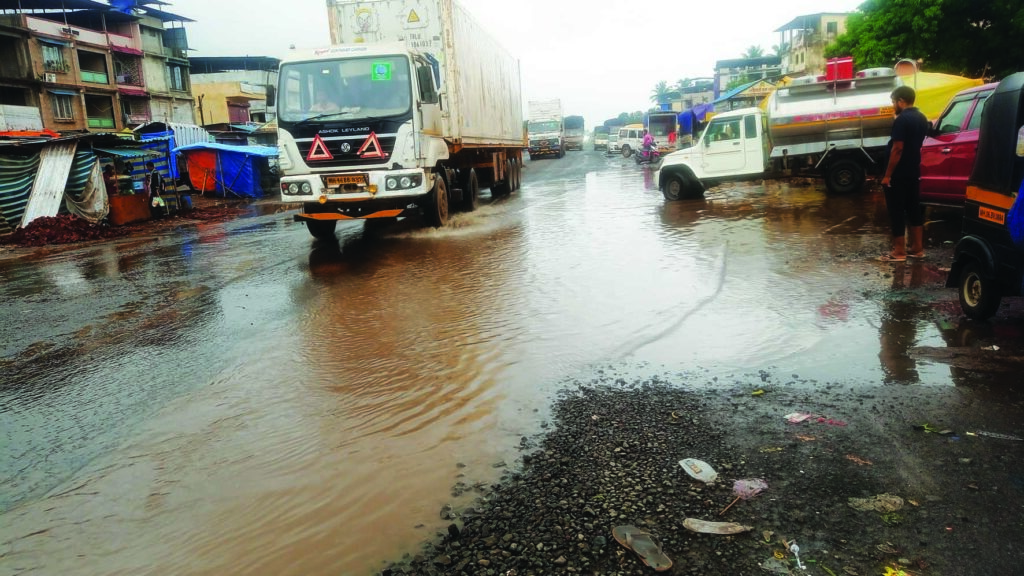मुंबई-गोवा महामार्ग 66 वरील आंबेवाडी नाक्यावर पहिल्याच पावसात तलावाचे स्वरूप प्राप्त झाले, असून रस्त्यावर पाणीच पाणी झाले असून यातून मार्ग काढतांना प्रवाश्यांची तारांबल उडाली आहे. तर रिक्षा पार्किंगमध्ये पाणीचपाणी झाल्यामुळे रिक्षा कोठे पार्किंग कराव्या असा प्रश्न रिक्षा चालकांपुढे पडला आहे.