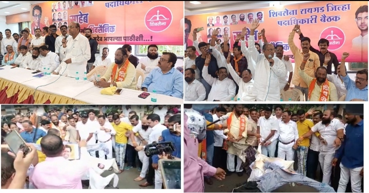 या बैठकीनंतर शिवसेनेशी गद्दारी करणारे एकनाथ शिंदे, भारत गोगावले, महेंद्र दळवी व महेंद्र थोरवे या चौकडीचा प्रतीकात्मक पुतळा बनवून शिवसैनिकांनी जाळुन त्यांचा निषेध केला तसेच एकनाथ शिंदे यांच्या विरोधात जोरदार घोषणाबाजी करण्यात आली.