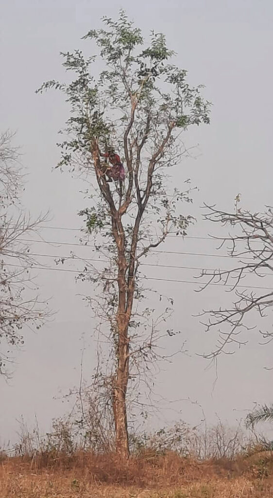 बेलाची पाने काढण्यासाठी चढलेली आदिवासी महिला या झाडावर तब्बल 30-35 फूट चढून पाने काढताना दिसत होती. बेलाच्या झाडाला मोठ्या प्रमाणात झाडाच्या खोडाला आणि फांद्या यांना काटे असतात. त्या काट्यांची लांबी ही दोन ते तीन इंच लांबीचे असतात, त्यामुळे ते काटे चुकवीत ही महिला बेलाच्या झाडावर अगदी तुरळक असलेली पाने असताना ती पाने काढताना त्या महिलेची कसरत प्रंचड जिद्द दाखविणारी होती. त्या आदिवासी महिलेची ती बेलाची झाडावर चढून पाने काढण्याची कसरत ही कशासाठी आहे तर पोटासाठी आणि दोन पैसे कमविण्यासाठी आहे असे स्पष्ट झाले आहे.