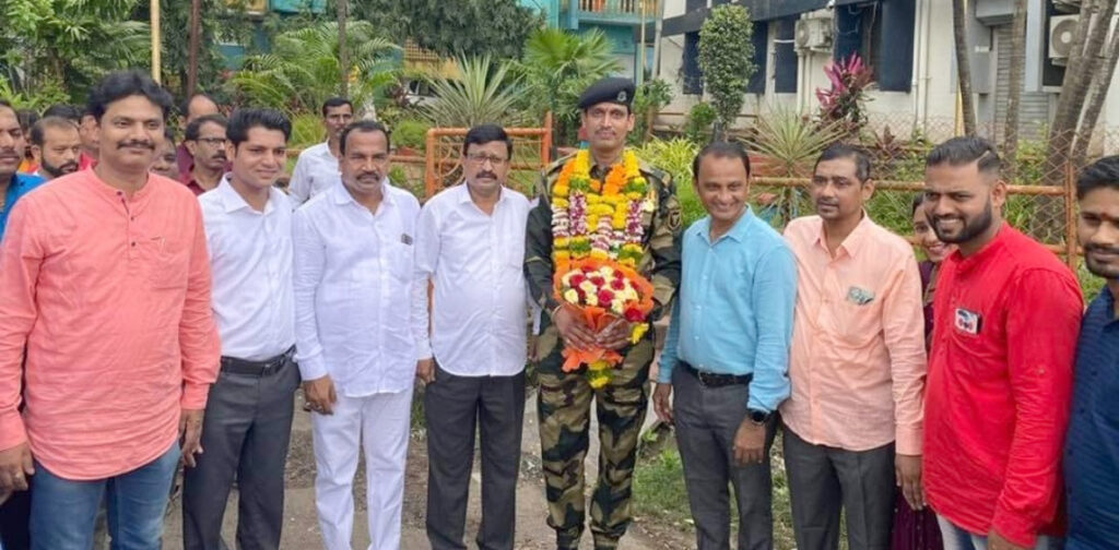 गावातील नागरीक, व्यावसायीक, ग्रा.पं.कार्यालय, विविध संघटना,अधिकारी पदाधिकारी यांनी त्यांचे स्वागत केले. याप्रसंगी खाडे, देसाई परिवार तर्फे तसेच माजी जिल्हापरिषद सदस्य सुरेश खैरे,अनुपम कुलकर्णी, नरेश खाडे, राजेश मपारा, संदेश शेवाळे, आरिफ मनियार आदि मान्यवरांनी त्याचा सन्मान केला. कार्यक्रमाला गाव व परिसरातील बहूसंख्य नागरीक, महिला, विद्यार्थी, माजी सैनिक, अधिकारी, पदाधिकारी, आजी सैनिक असा प्रचंड जनसमुदाय उपस्थित होते.