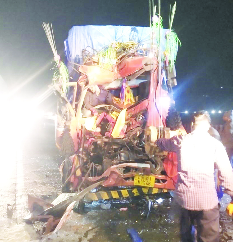 मुंबई-पुणे द्रुतगती मार्गावर पुण्याहून मुंबईकडे आयसर टेम्पो माल घेऊन जात असताना तो बोरघाटात आडोशी गावाच्या हद्दीत आला असता चालकाचे टेम्पोवरील नियंत्रण सुटले. त्यामुळे टेम्पोने समोरील अज्ञात वाहनाला जोरदार धडक दिली. यात टेम्पोमधील चालक अनिल लाखंन गावित (27), रा. सिलवास दादर हवेली, अनिकेत राजू बोरसा सिल्ववा (24) या दोघांचा जागीच मृत्यू झाला. यात टेम्पोची केबिन पूर्णपणे दबल्याने मोठ्या प्रमाणात नुकसान झाले आहे.