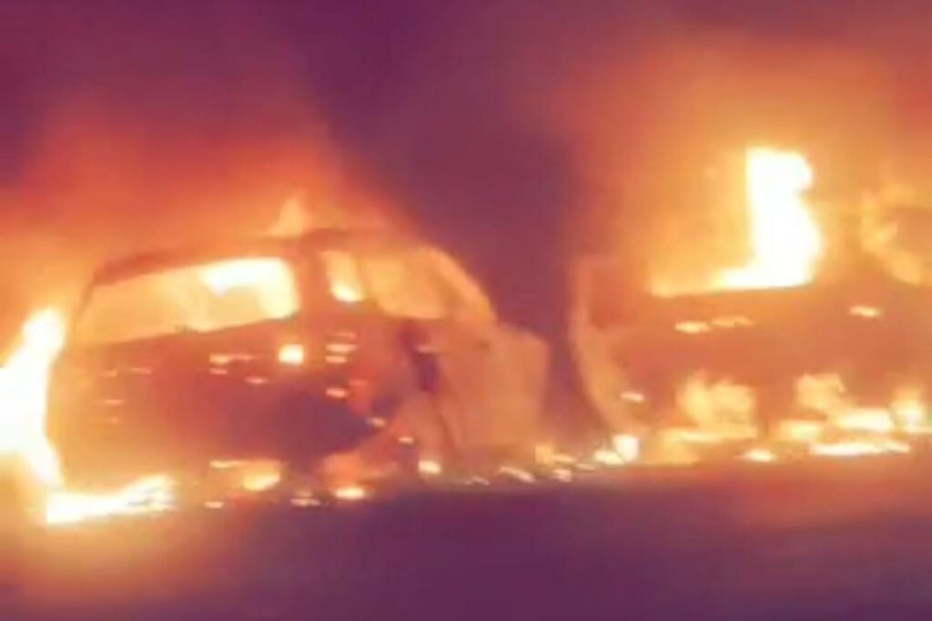 नागोठणेनजीक टँकरच्या धडकेने दोन वाहने पेटली