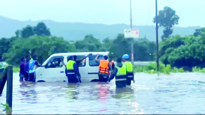 पुरात अडकलेल्या दोन वाहनांना केले रेस्क्यू