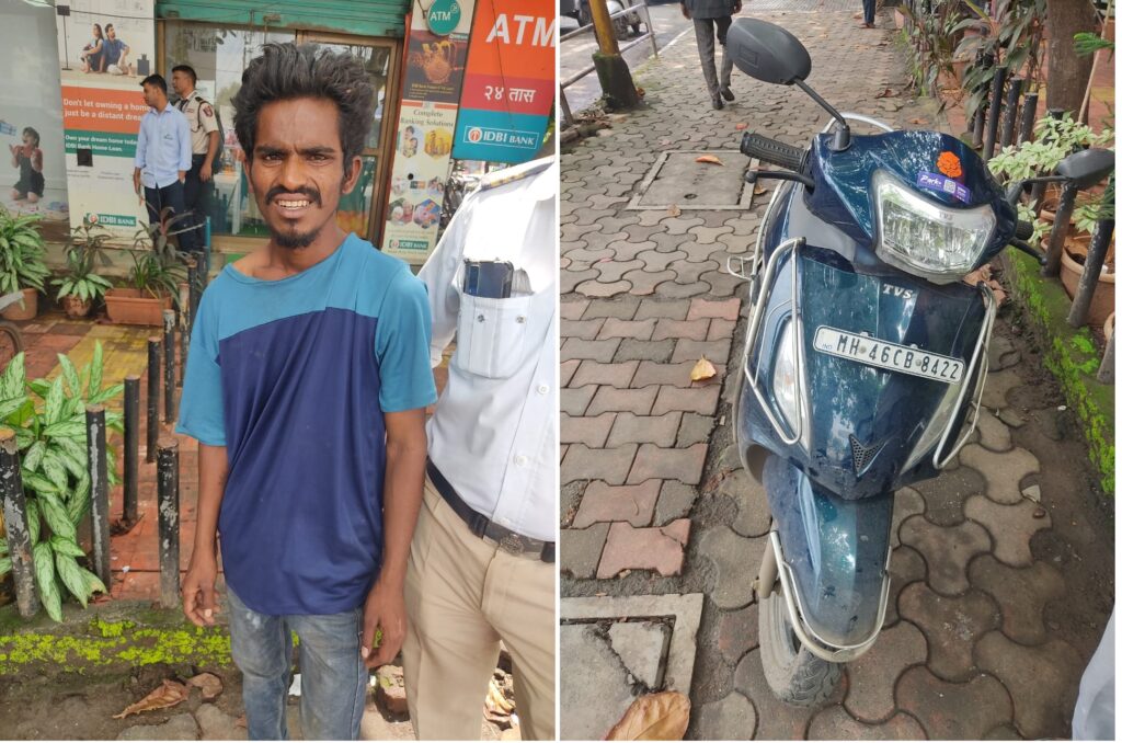 स्कुटी गाडी चोरून पसार होण्याच्या प्रयत्नात असलेल्या चोरट्यास पनवेल वाहतूक शाखेच्या पथकाने विशेष नाका बंदी दरम्यान पकडल्याने त्यांच्या कडून अनेक चोरीच्या गाड्यांचे गुन्हे उघडकीस येण्याची शक्यता वर्तवण्यात येत आहे.