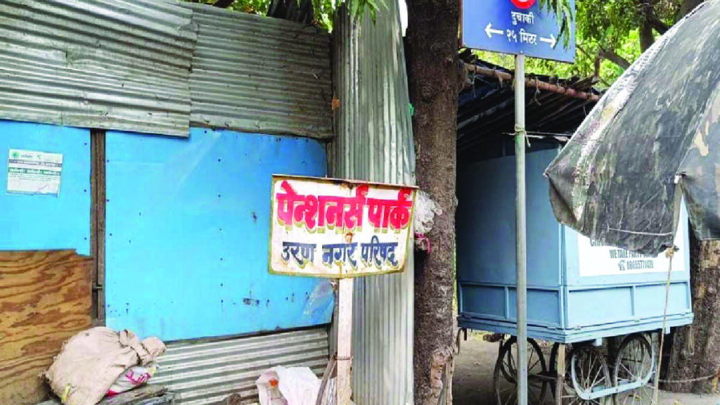 शहरातील उरण मोरा मार्गावर उरण नगर परिषेदेने पेन्शनर्स पार्कचा फलक बसविला आहे. मात्र, पार्कसाठी उभे राहण्यासाठी ही जागा शिल्लक राहिलेली नाही. त्यामुळे येथील पेन्शनर्स पार्क हे केवळ फलकापुरते उरले आहे. या पार्कात ज्येष्ठ नागरिकांना बसायला एकही आसन व्यवस्था नाही. यामुळे ज्येष्ठांची मोठी कुचंबना होत असल्याने या पार्ककडे पाठ फिरवली आहे.