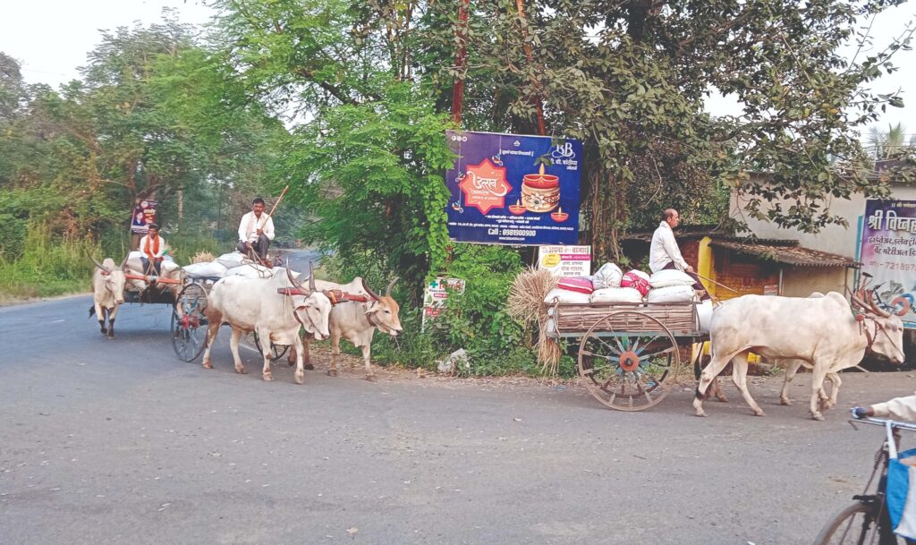 ग्रामीण भागात भातशेतीची सर्वच कामे ही बैलगाडीच्या सहाय्याने केली जात आहेत. बदलत्या काळात जरी वाहतुकीची साधने वाढली असली तरीसुद्धा शेतीच्या कामासाठी बैलगाडी अग्रेसर ठरत आहे. यामध्ये शेतातील भारे वाहणे, भात भरडणे, शेतामध्ये शेणखत टाकणे त्याचबरोबर वाहतुकीच्या कामासाठी वापर होत आहे. यामुळे शेतकर्यांच्या प्रत्येक कामात बैलगाडीचे मोठे योगदान ठरत आहे. शिवाय, इंधनाची बचत होत असते. मात्र, गेल्या काही वर्षांत वाहनांचा वापर वाढल्यामुळे बैलगाडी कालबाह्य होत आहे.