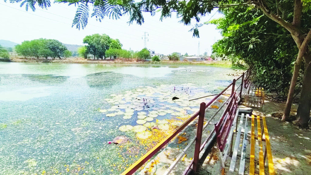शेलू येथील गाव तलाव प्रदूषणाच्या विळख्यात