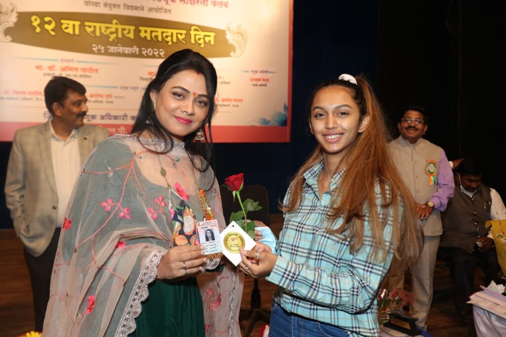 अभिनेत्री प्रार्थना बेहरे यांच्या हस्ते नव मतदारांना मतदान ओळख पत्र प्रदान