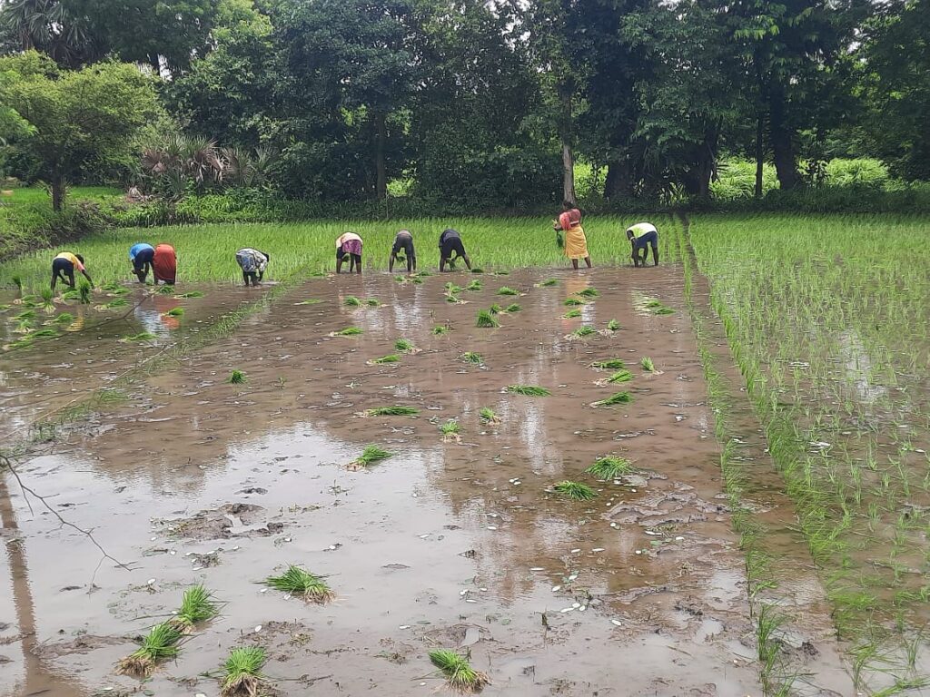 आदिवासी बांधवांकडून भातपिकाची लागवड