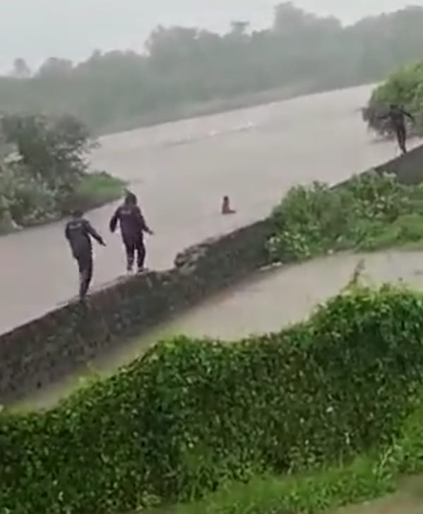 नेरळजवळील ममदापूर ग्रामपंचायत हद्दीतून वाहणार्या नाल्याच्या पाण्यात एक अनोळखी व्यक्ती वाहून गेली. दुपारी एकच्या सुमारास घडलेल्या घटनेत नाल्याच्या पाण्यातून वाहून गेलेली व्यक्ती उल्हास नदीच्या प्रवाहात गेली आणि बेपत्ता झाली. दरम्यान, संबंधित तरुण कोणत्या गावातील आहेख् याबद्दल अद्याप माहिती मिळाली नाही. मात्र या घटनेचा व्हिडिओ समोर आला आहे.